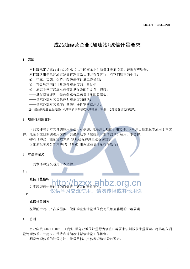 DB34/T 1383-2011 成品油经营企业(加油站)诚信计量要求