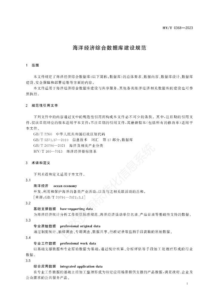 HY/T 0368-2023 海洋经济综合数据库建设规范