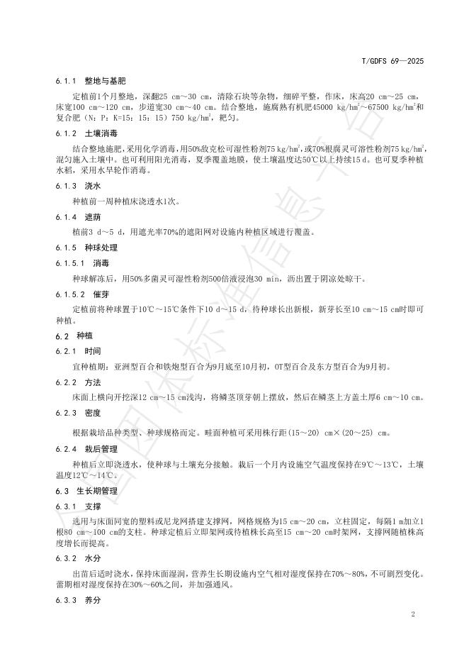 T/GDFS 69-2025 切花百合设施栽培技术规程