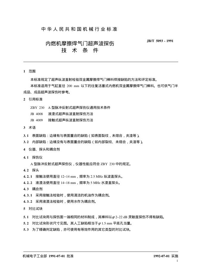JB/T 5093-1991 内燃机摩擦焊气门超声波探伤 技术条件