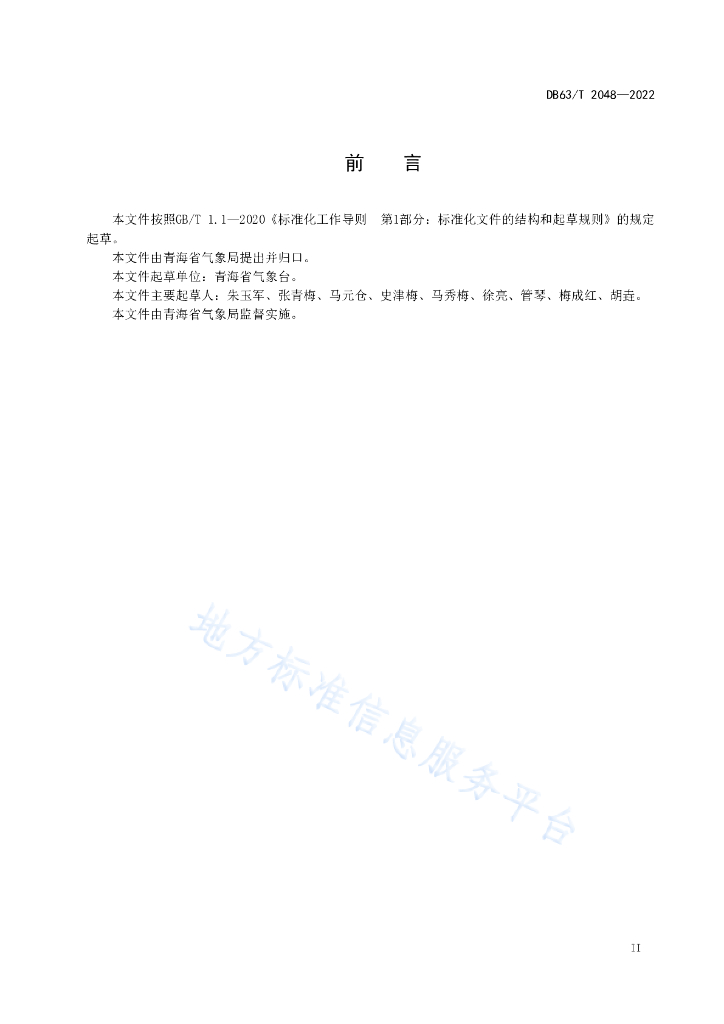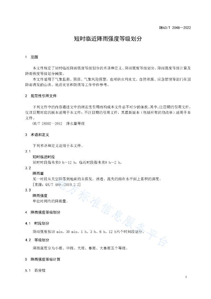 DB63/T 2048-2022 短时临近降雨强度等级划分