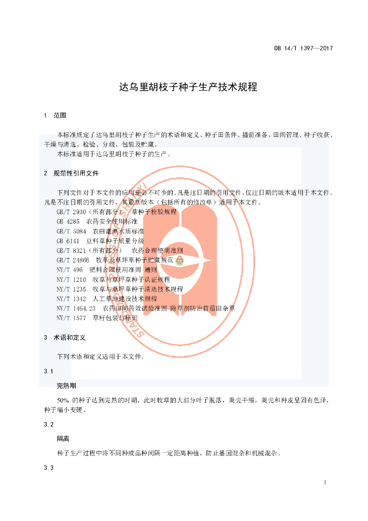 DB14/T 1397-2017 达乌里胡枝子种子生产技术规程