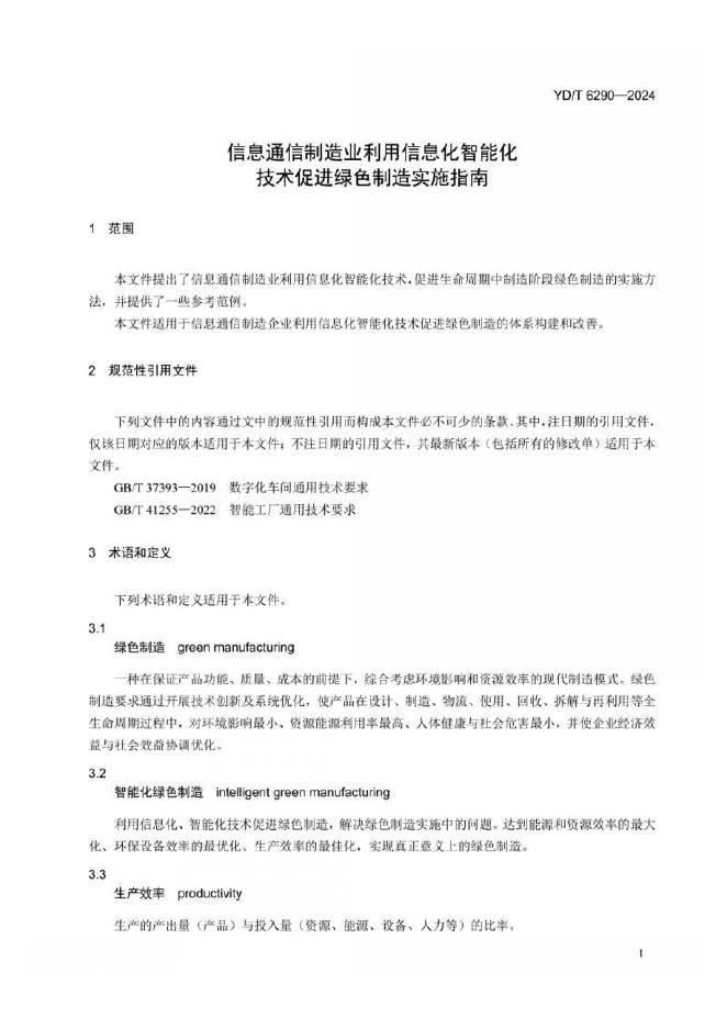 YD/T 6290-2024 信息通信制造业利用信息化智能化技术促进绿色制造实施指南