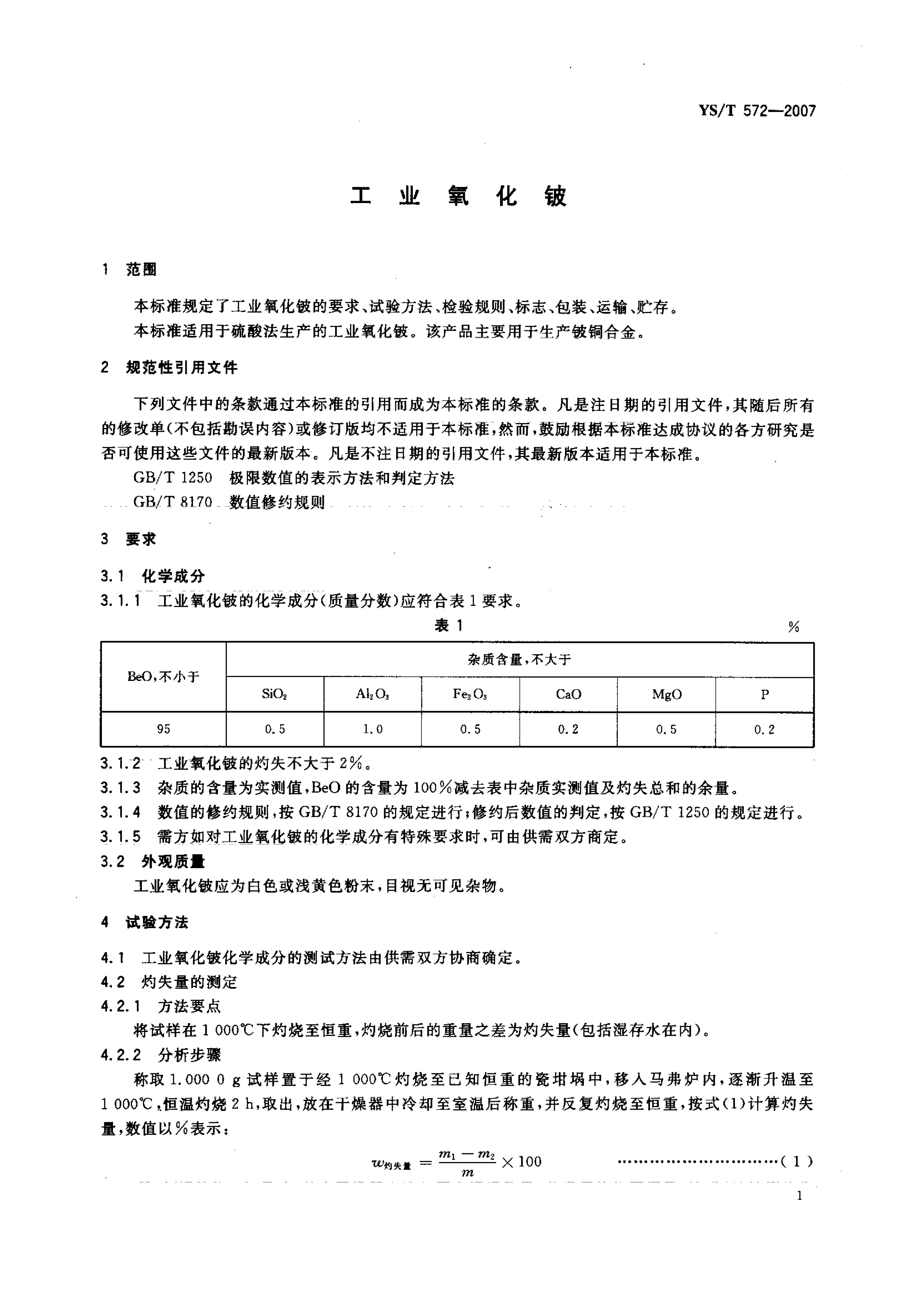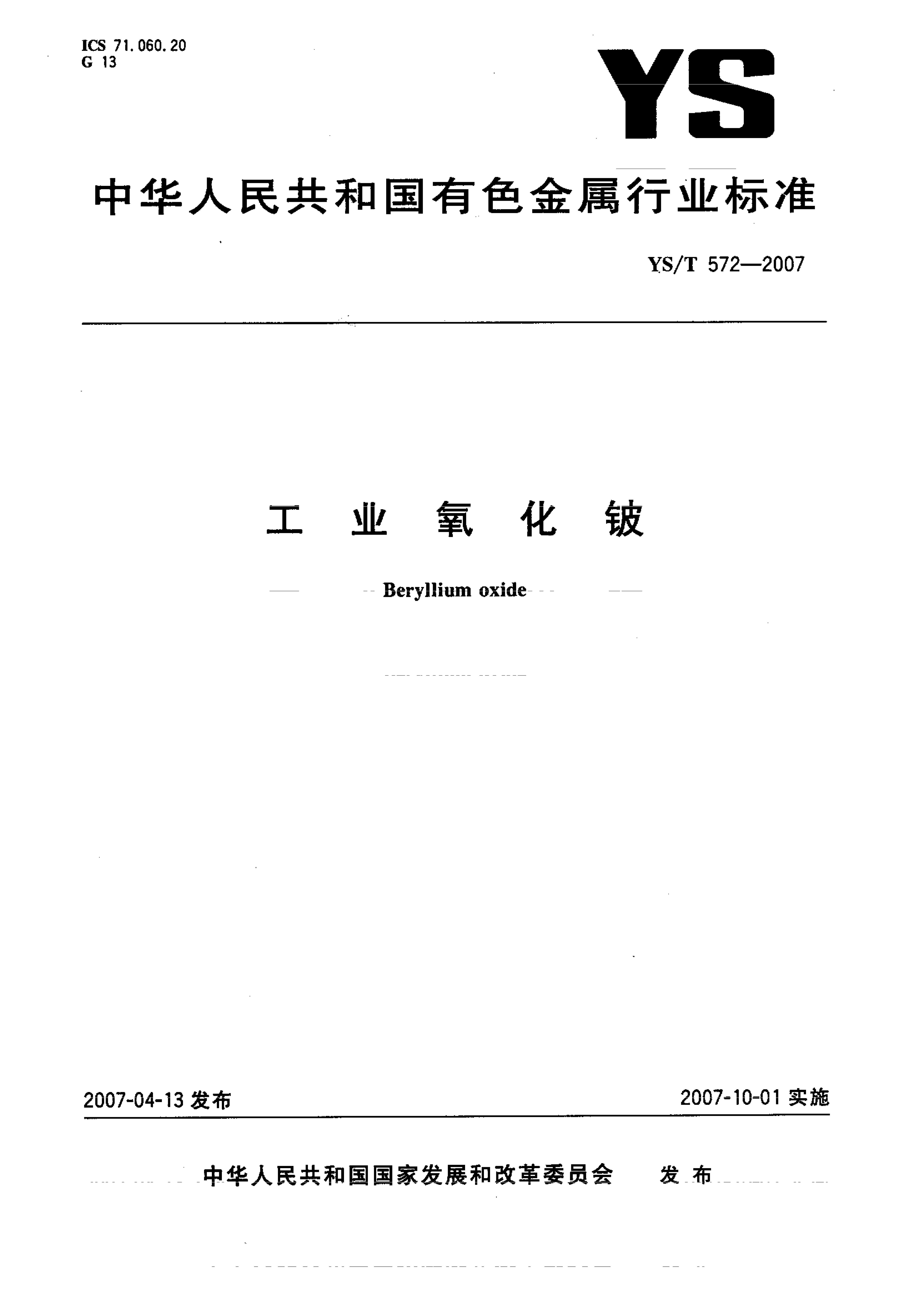 YS/T 572-2007 工业氧化铍