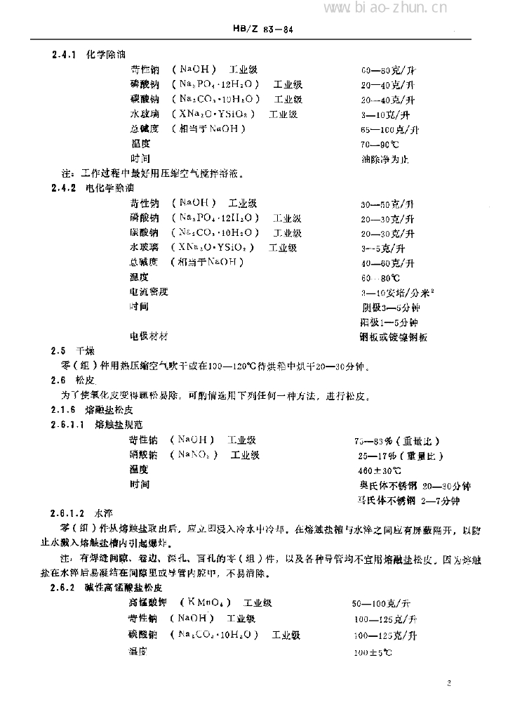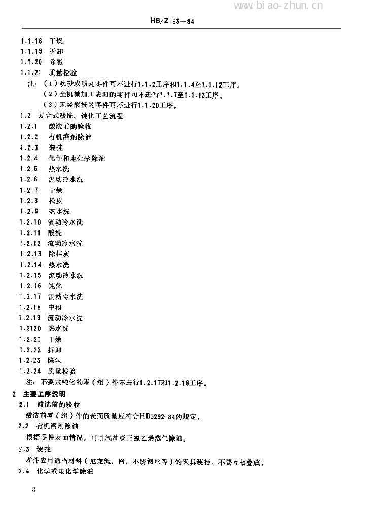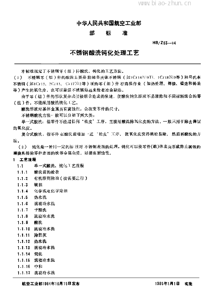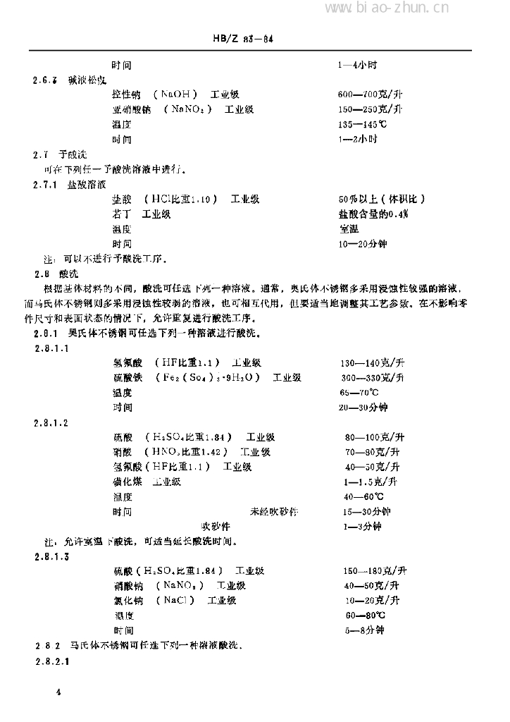 HB/Z 83-84 不锈钢酸洗钝化处理工艺