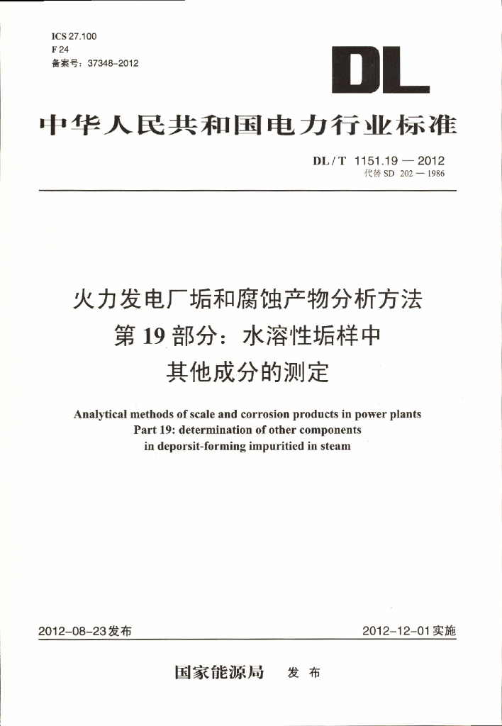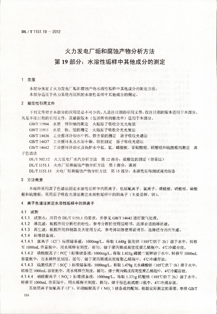 DL/T 1151.19-2012 火力发电厂垢和腐蚀产物分析方法 第19部分:水溶性垢样中其它成分的测定