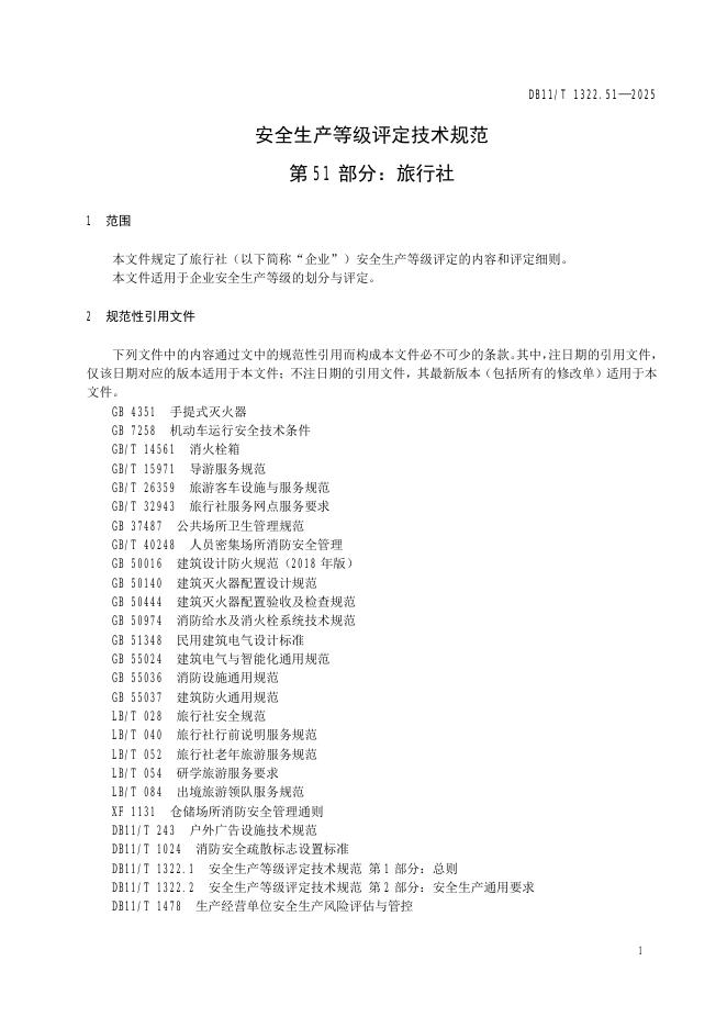 DB11/T 1322.51-2025 安全生产等级评定技术规范 第51部分:旅行社