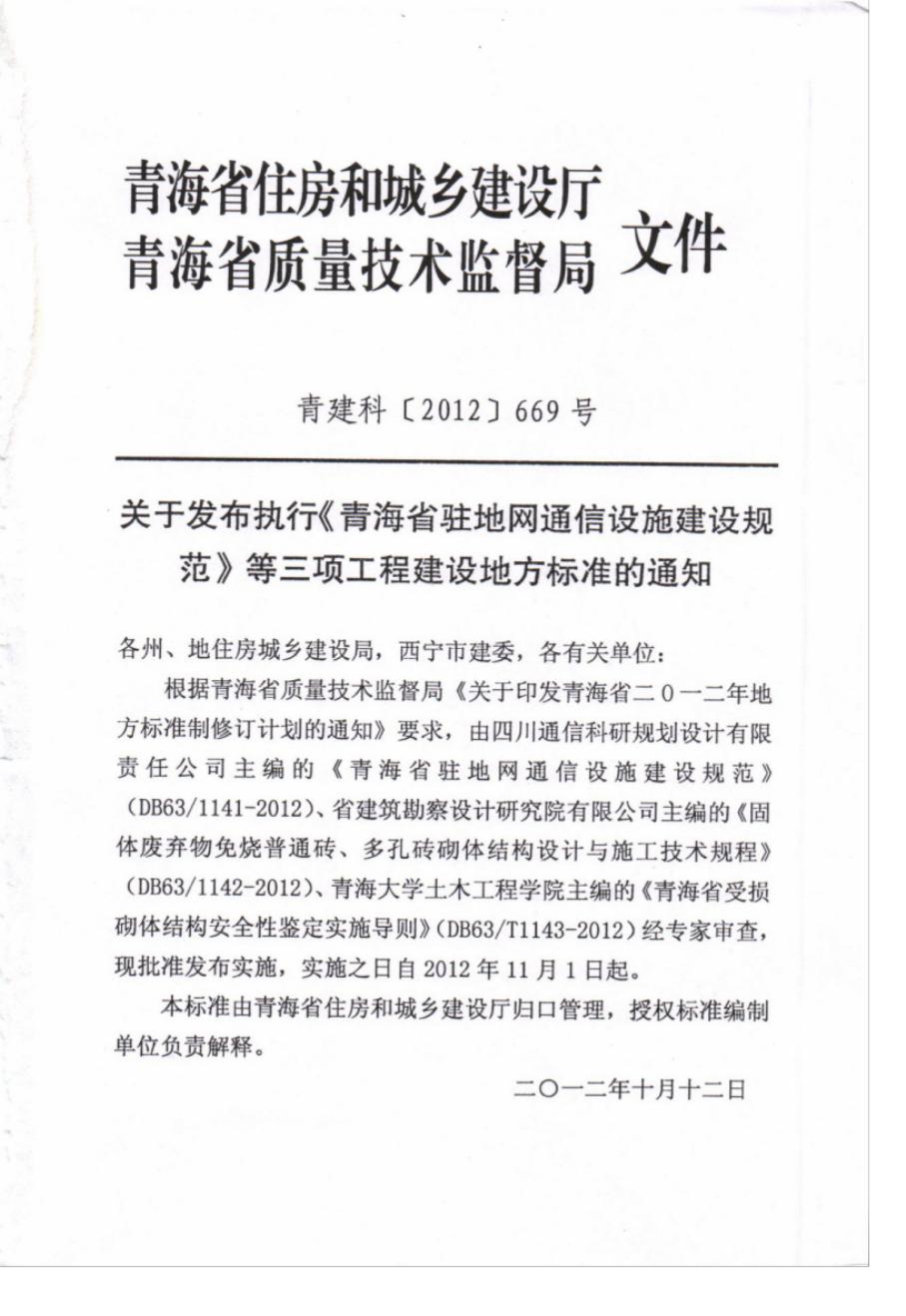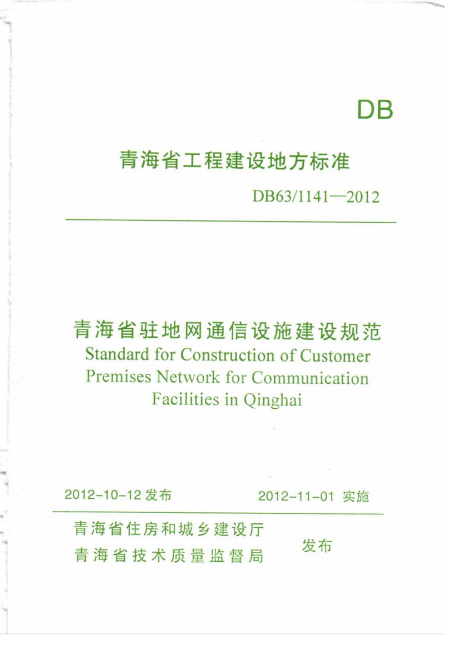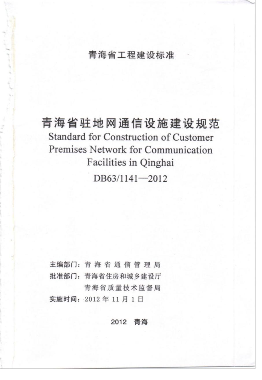 DB63 1141-2012 青海省驻地网通信设施建设规范