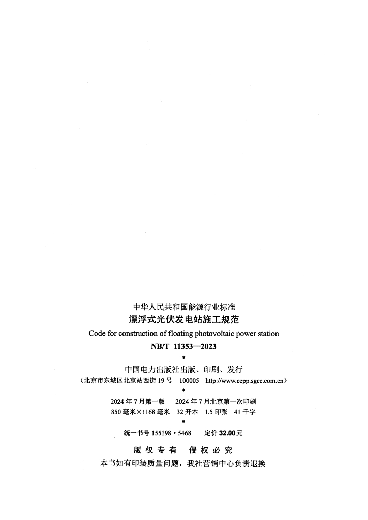 NB/T 11353-2023 漂浮式光伏发电站施工规范
