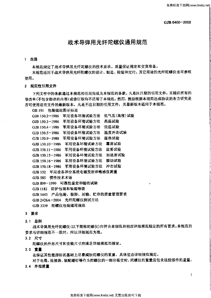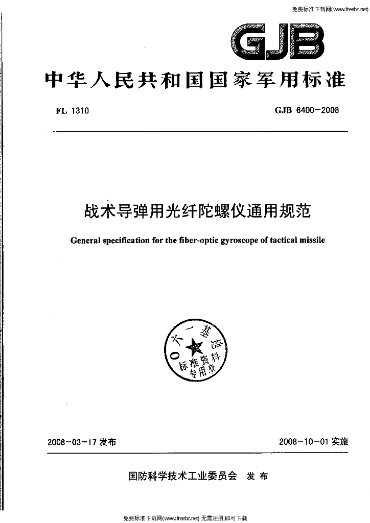 GJB 6400-2008 战术导弹用光纤陀螺仪通用规范