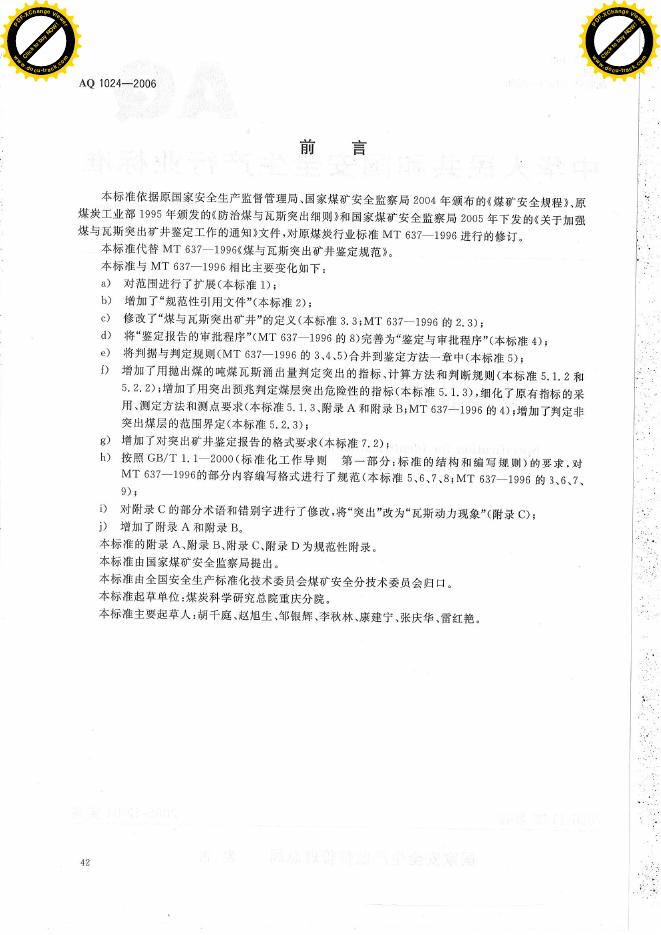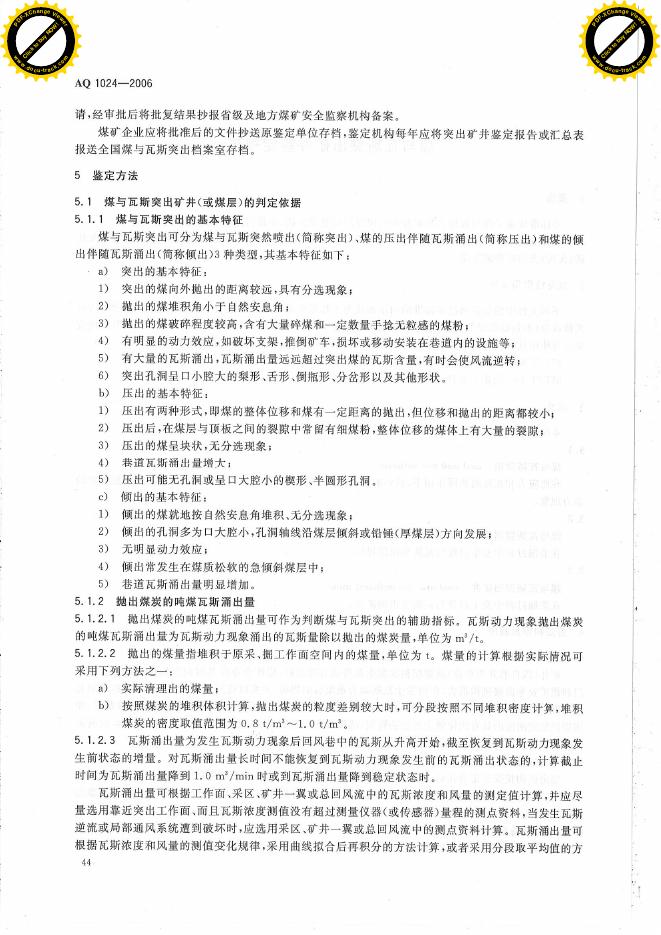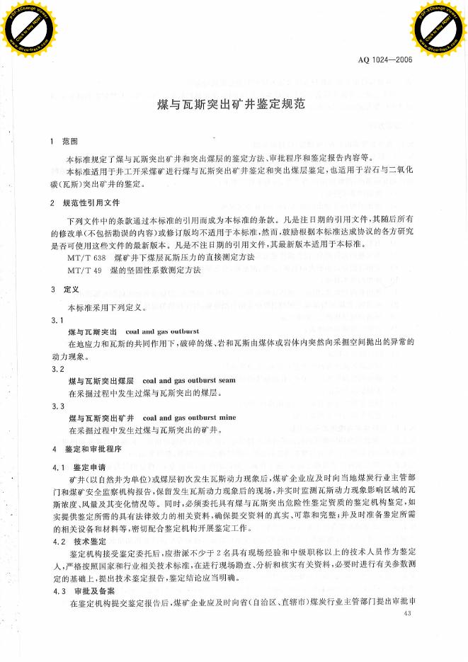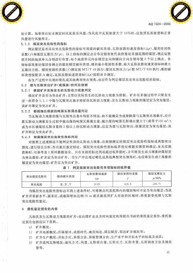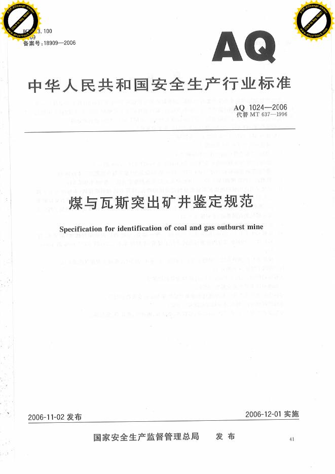 AQ 1024-2006 煤与瓦斯突出矿井鉴定规范