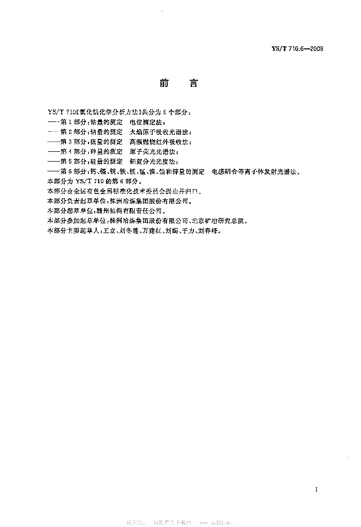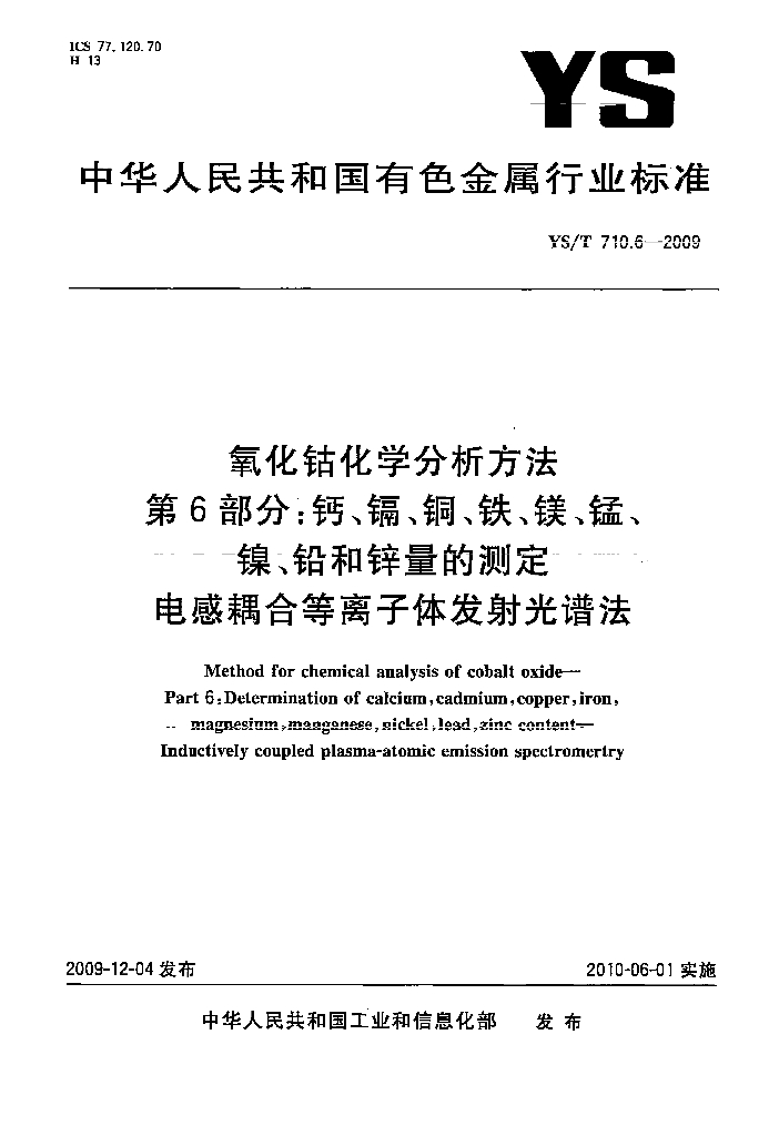 YS/T 710.6-2009 氧化钴化学分析方法 第6部分:钙、镉、铜、铁、镁、锰、镍、铅和锌量的测定 电感耦合等离子体发射光谱法