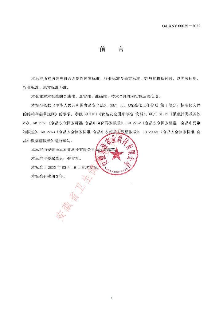 Q/LXNY 0002S-2022 乌梅汤饮料浓浆