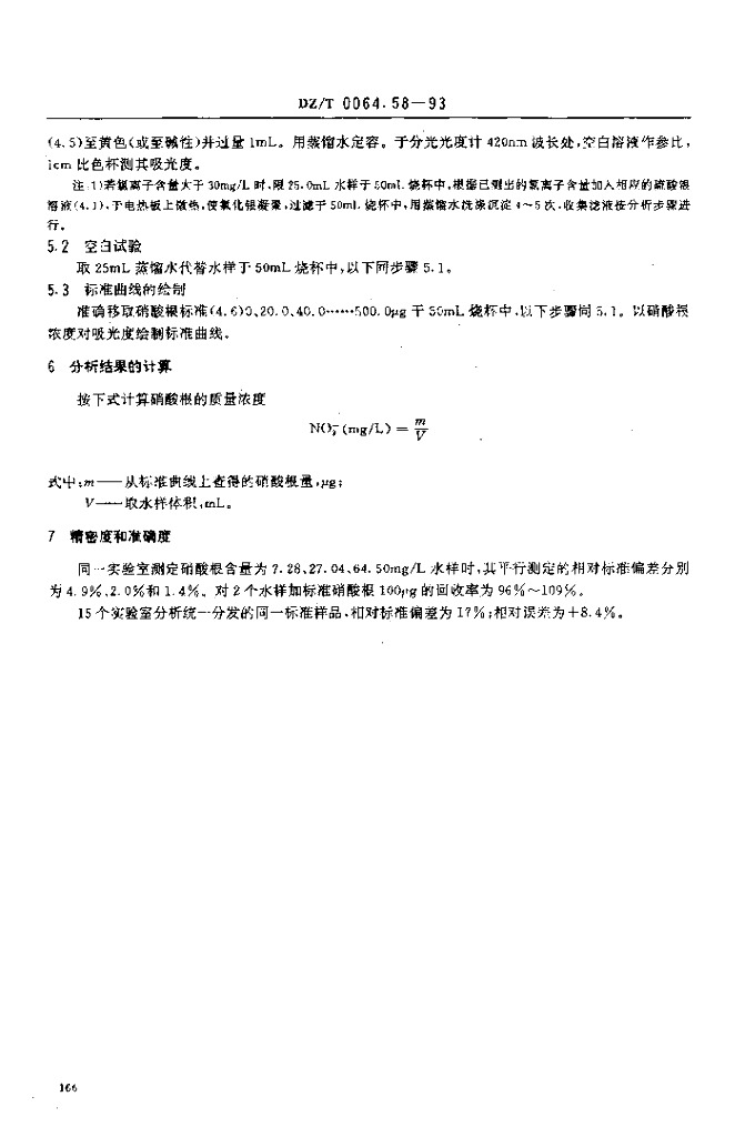 DZ/T 0064.58-1993 地下水质检验方法 二磺酸酚分光光度法测定硝酸根