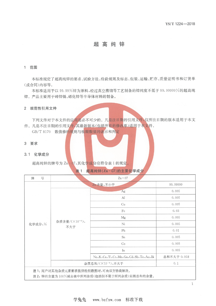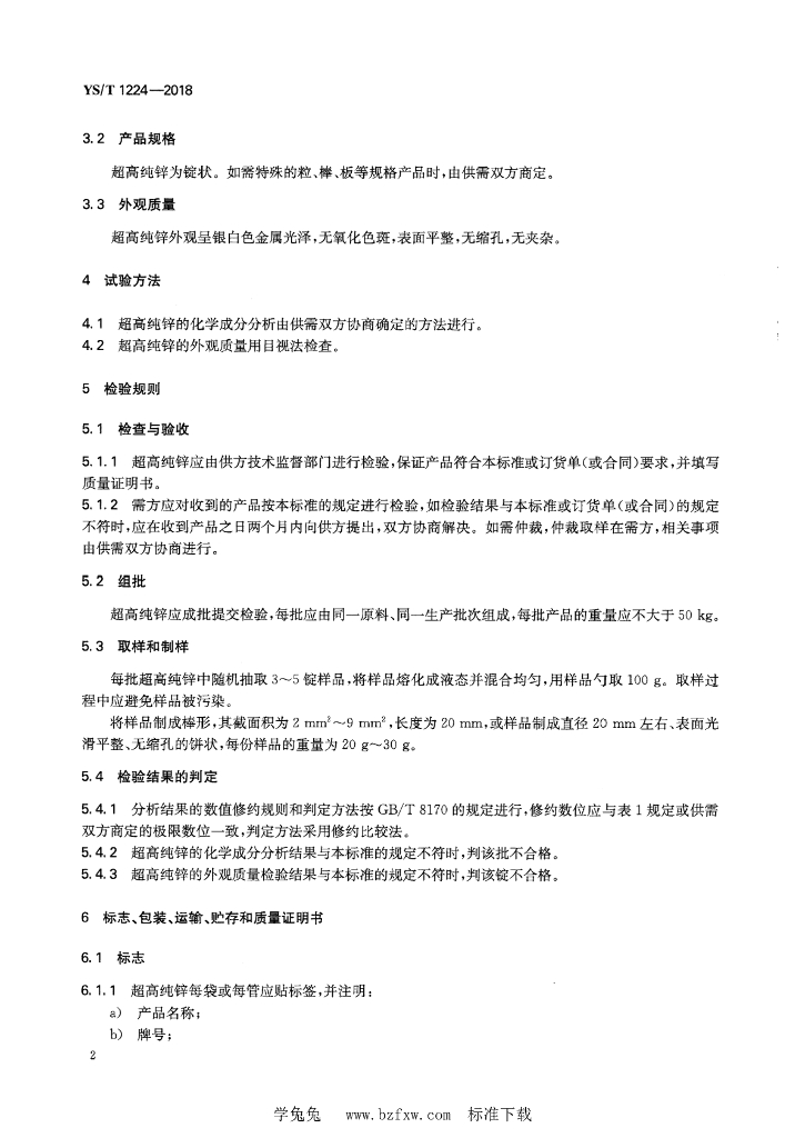 YS/T 1224-2018 超高纯锌