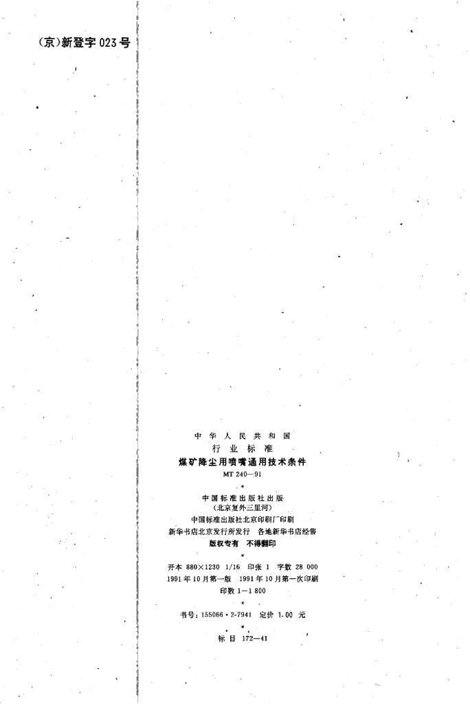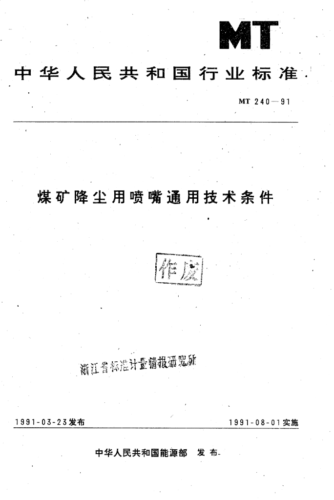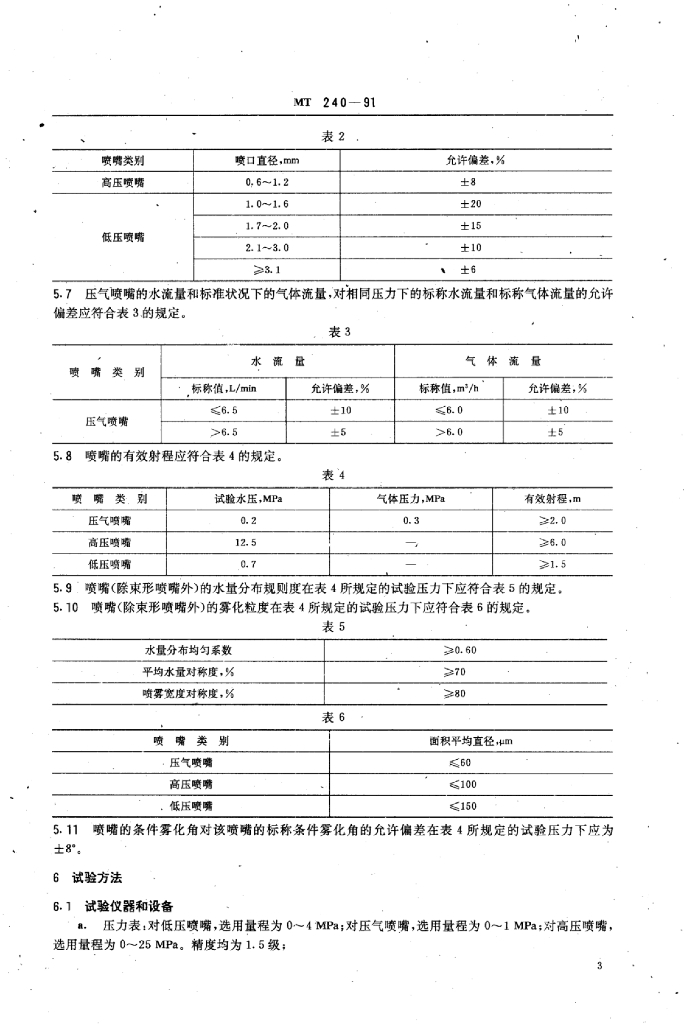 MT 240-1991 煤矿降尘用喷嘴通用技术条件