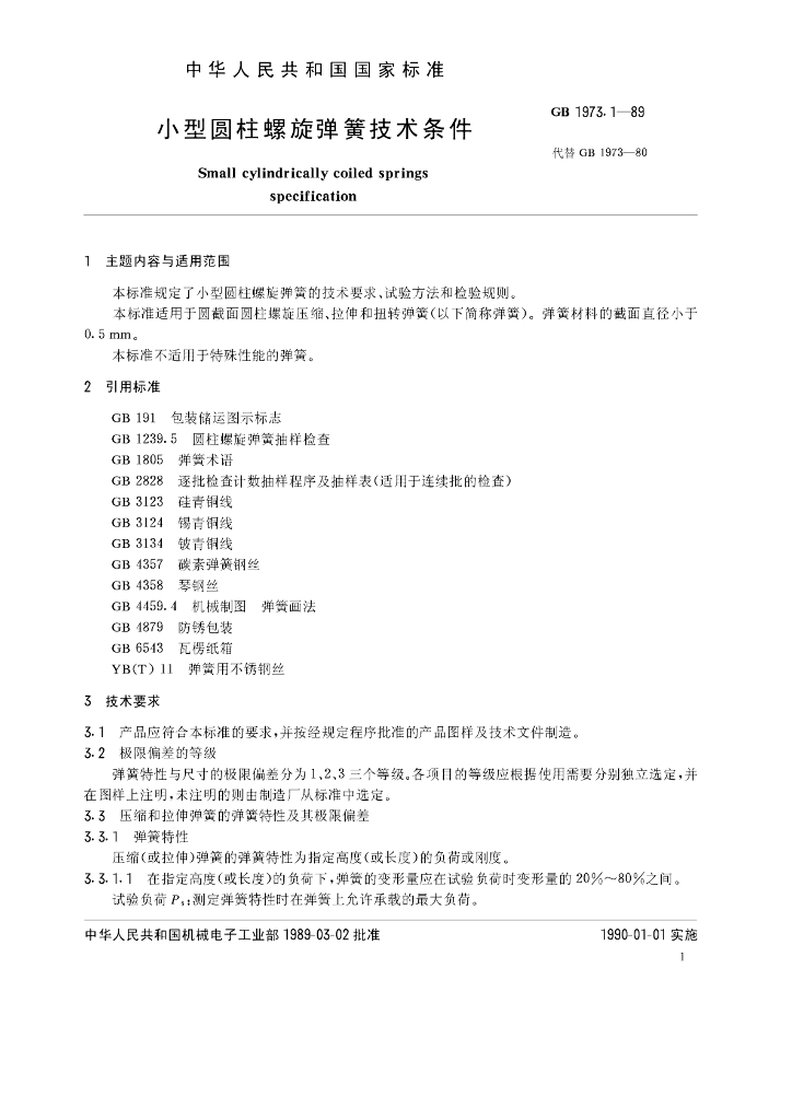 GB/T 1973.1-1989 小型圆柱螺旋弹簧技术条件