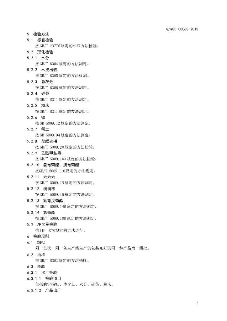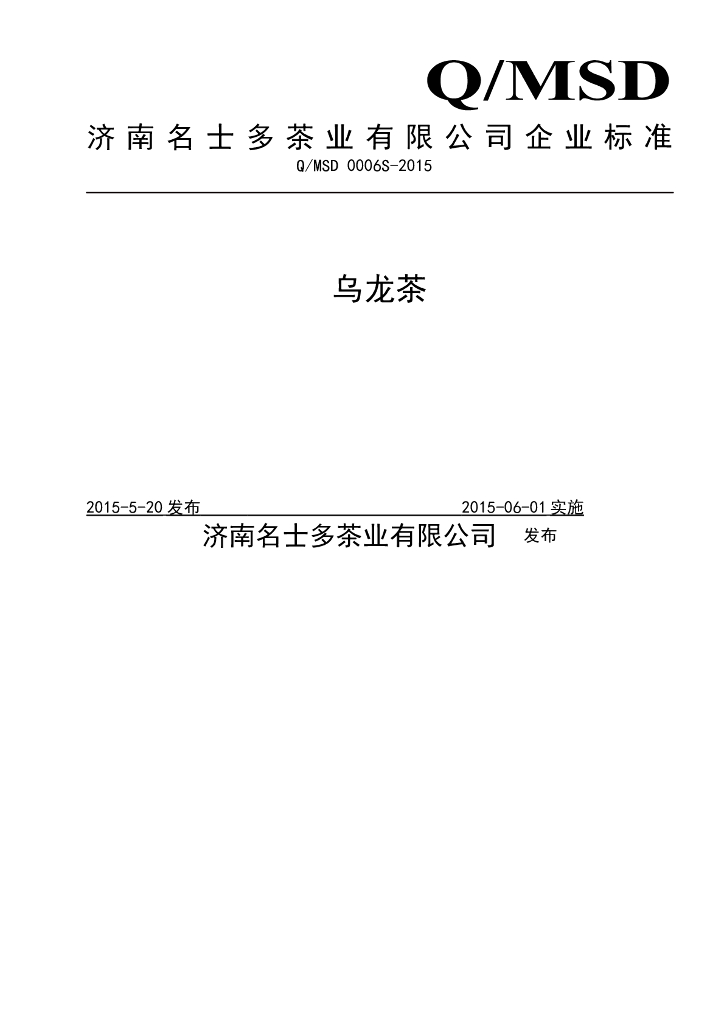 Q/MSD 0006S-2015 济南名士多茶业有限公司 乌龙茶