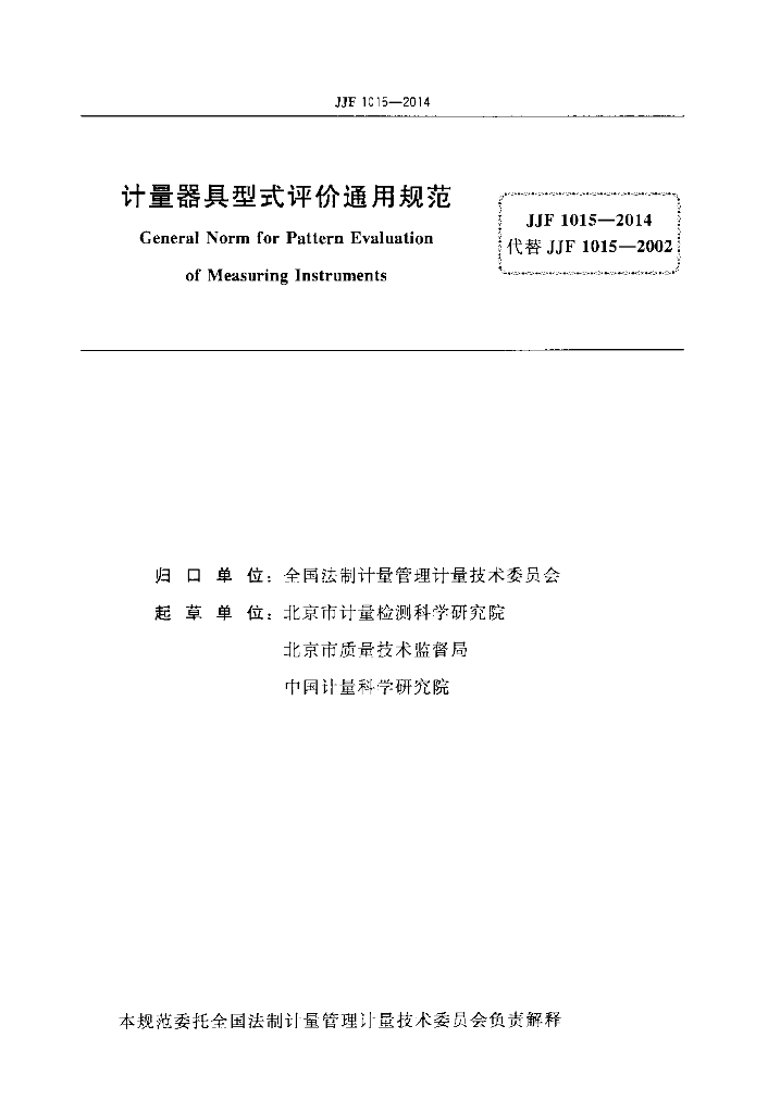 • 代替标准:JJF 1015-2002