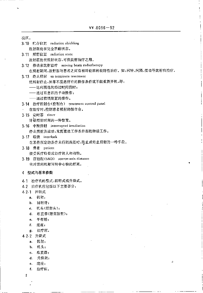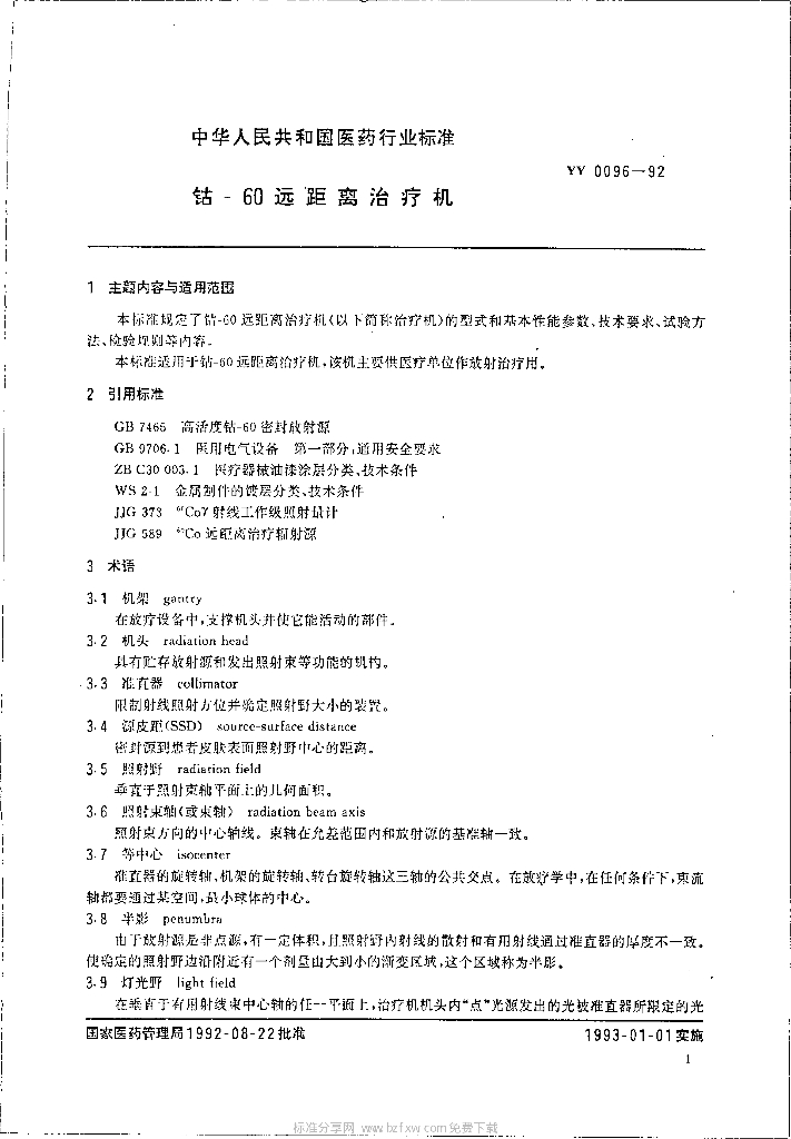 YY 0096-1992 钴-60远距离治疗机