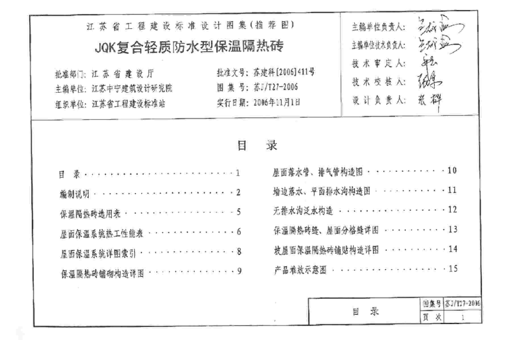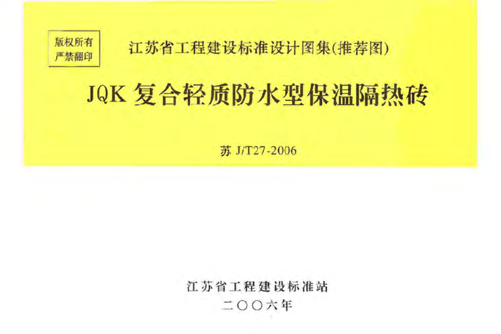 苏J/T27-2006 JQK复合轻质防水型保温隔热砖图集