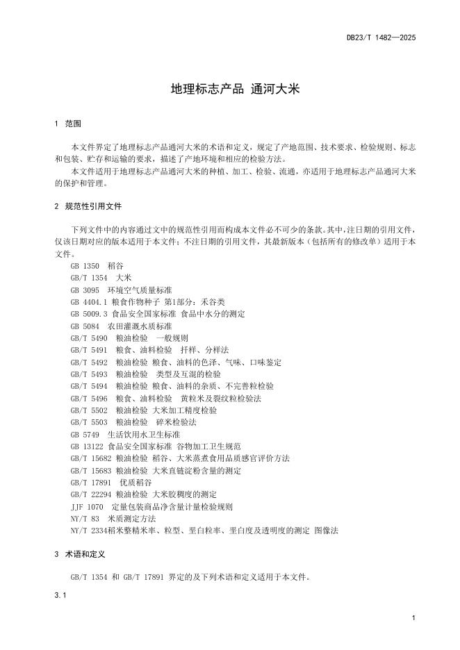 DB23/T 1482-2025 地理标志产品 通河大米