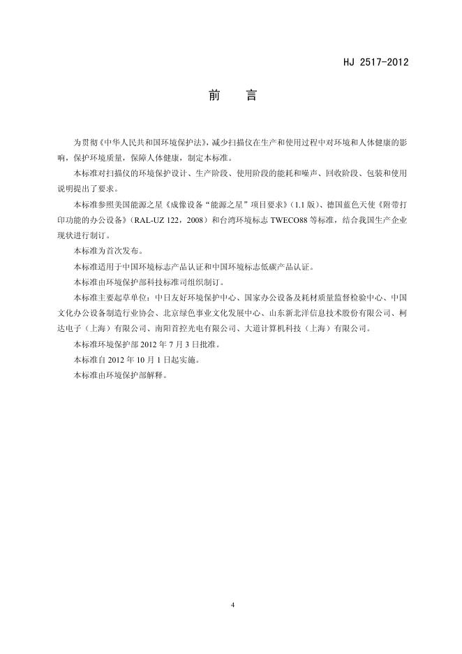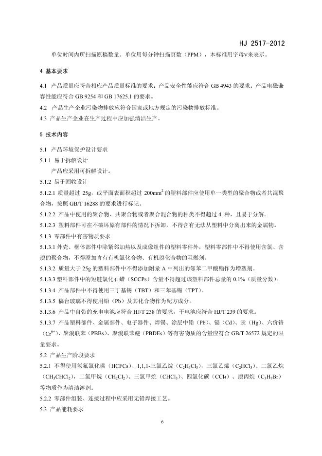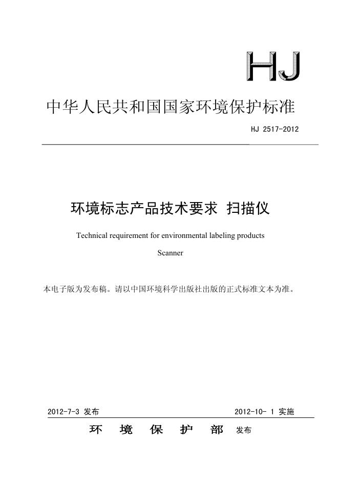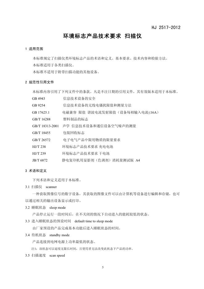 HJ 2517-2012 环境标志产品技术要求 扫描仪