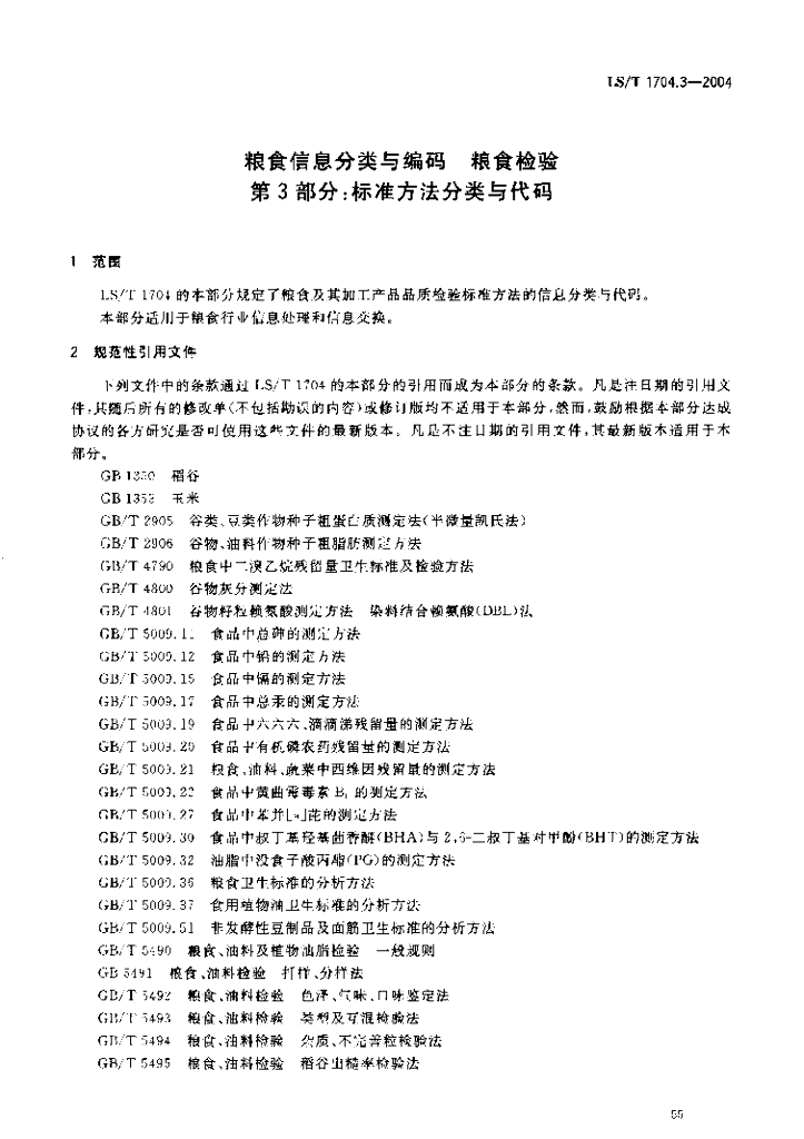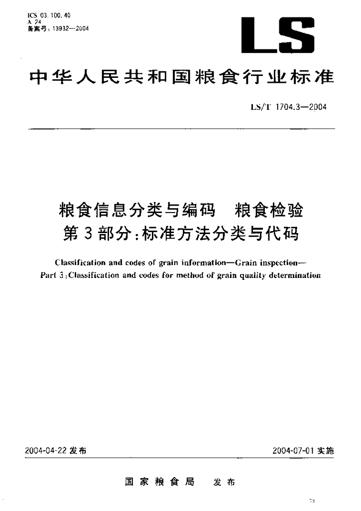 LS/T 1704.3-2004 粮食信息分类与编码 粮食检验 第3部分:标准方法分类与代码