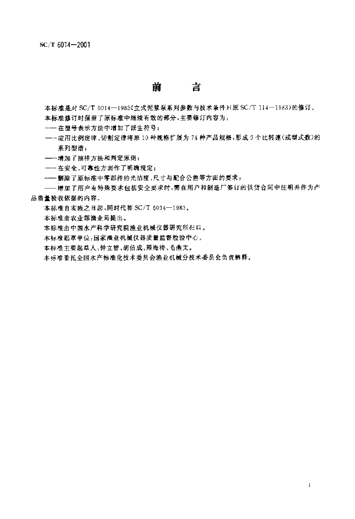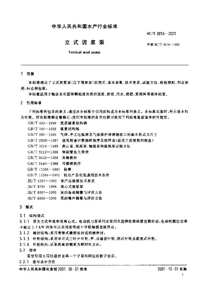 SC/T 6014-2001 立式泥浆泵