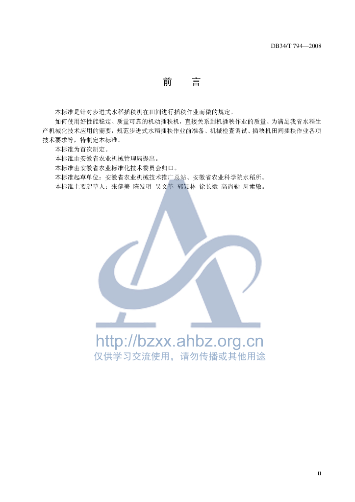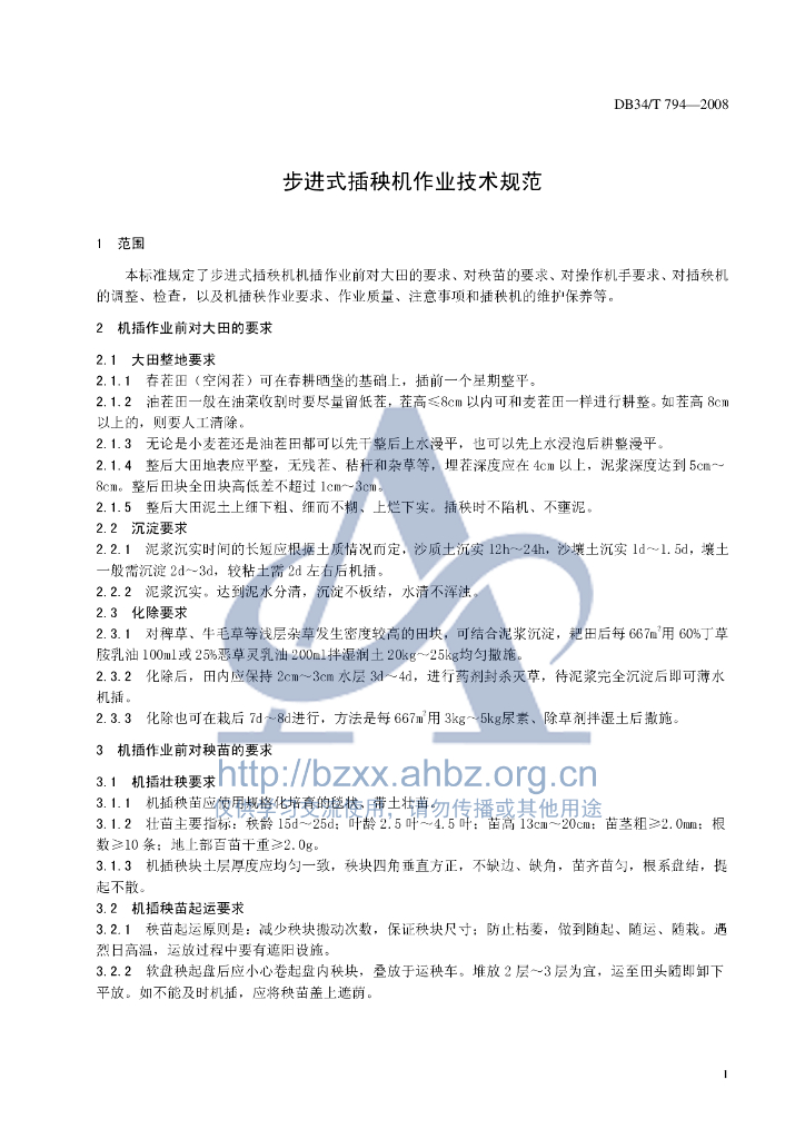 DB34/T 794-2008 步进式插秧机作业技术规范
