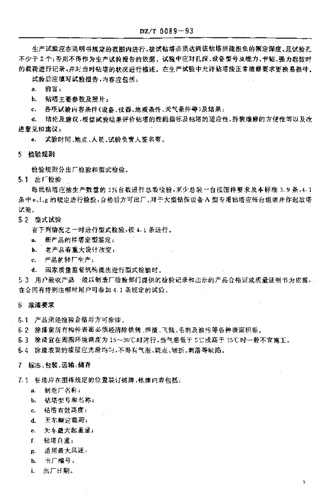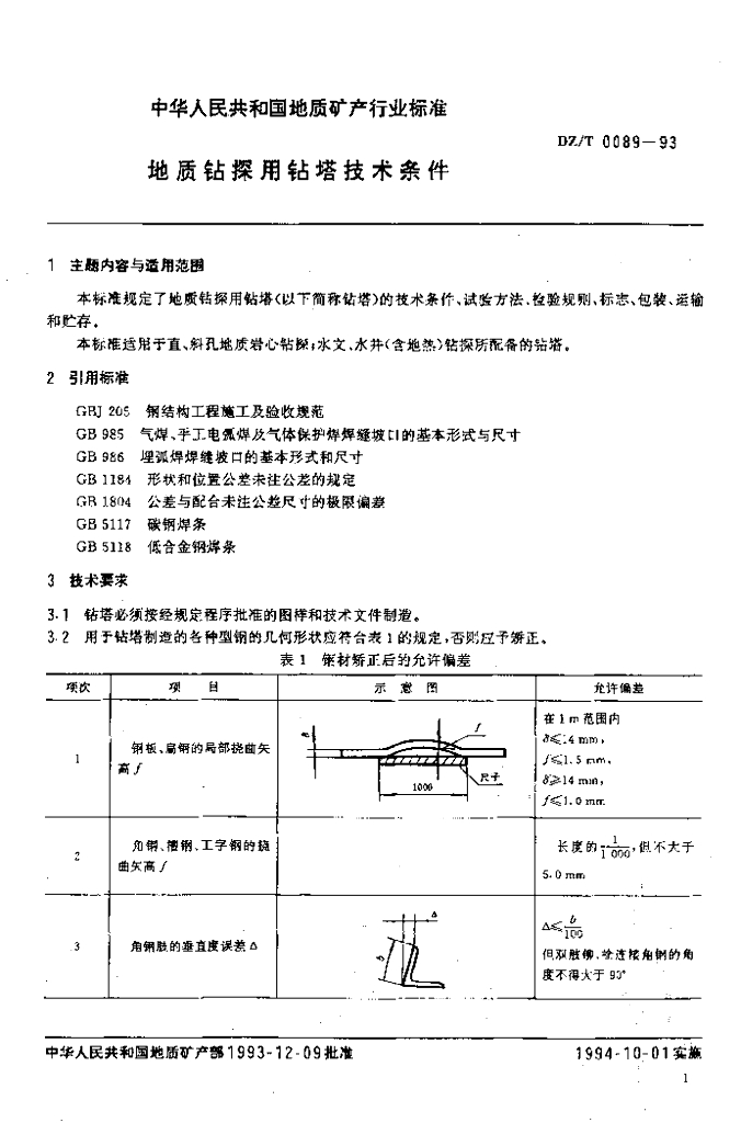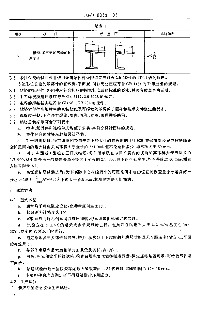 DZ/T 0089-1993 地质钻探用钻塔技术条件