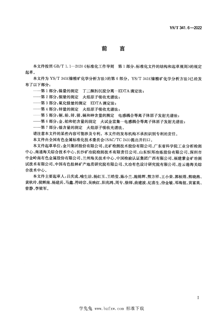 金川集团股份有限公司、北矿检测技术股份有限公司、广东省科学院工业分析检测中心、南通海关综合技术中心、长沙矿冶院检测技术有限责任公司、山东恒邦治炼股份有限公司、深圳市中金岭南有色金属股份有限公司、兰州海关技术中心、中国检验认证集团广西有限公司、福建紫金矿冶测试技术有限公司、中国有色桂林矿产地质研究院有限公司、大冶有色设计研究院有限公司、连云港海关综合技术中心