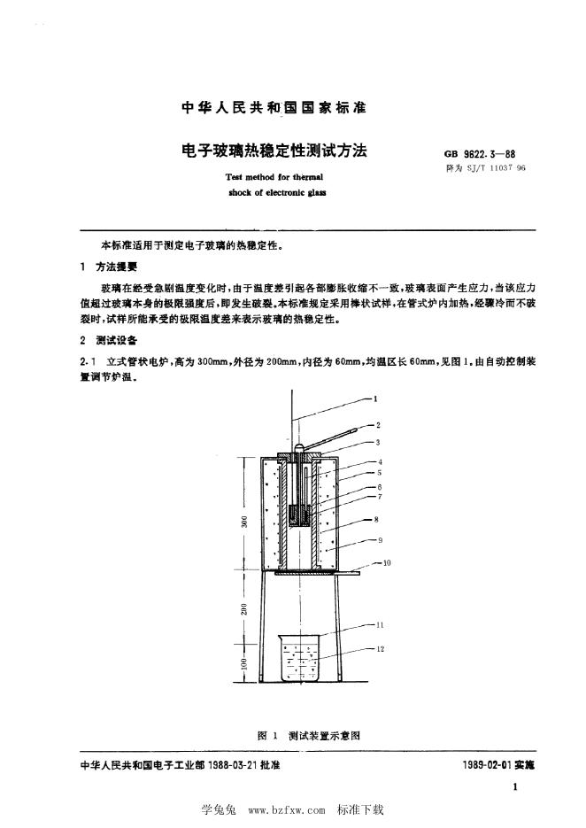 SJ/T 11037-1996 电子玻璃热稳定性测试方法