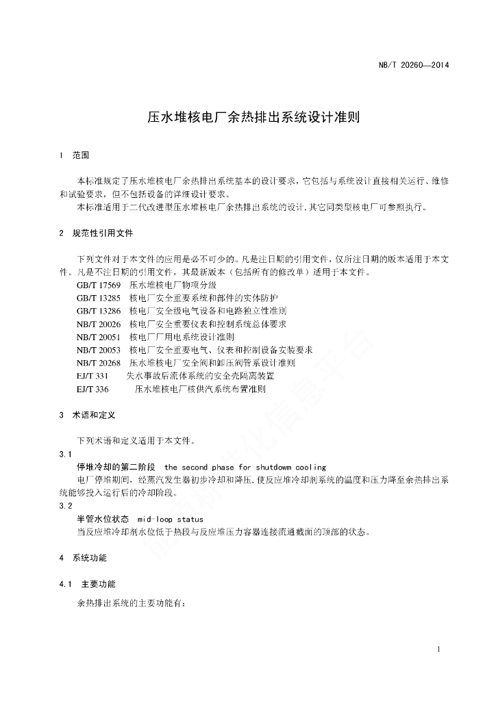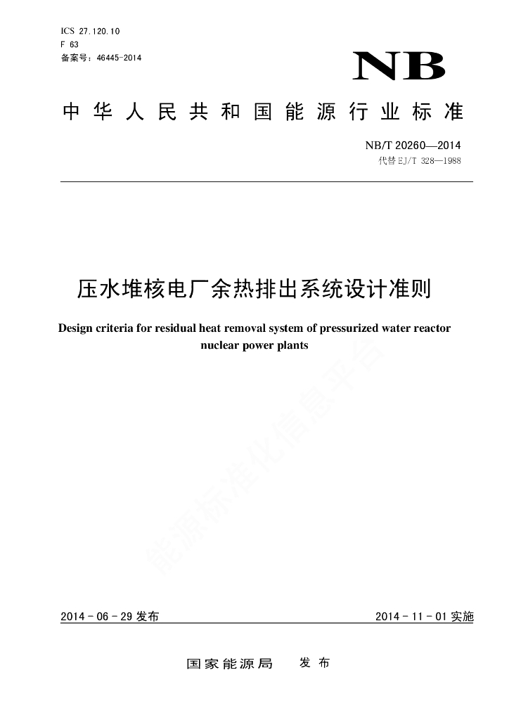 NB/T 20260-2014 压水堆核电厂余热排出系统设计准则