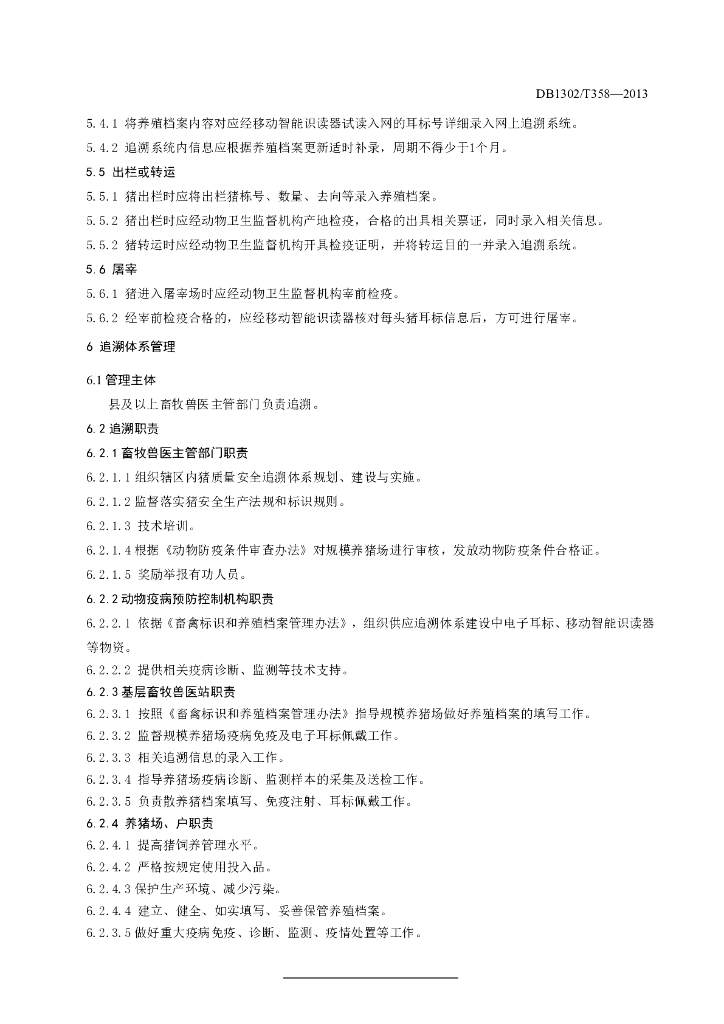 DB1302/T 358-2013 猪质量安全追溯体系建设管理规范