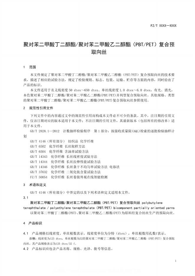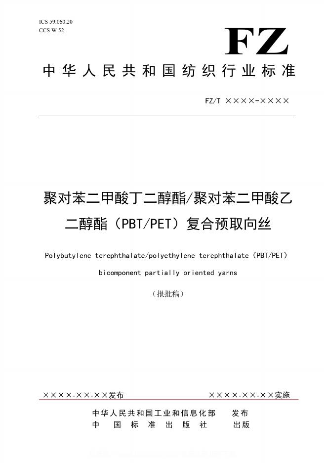 FZ/T 54145-2023 聚对苯二甲酸丁二醇酯/聚对苯二甲酸乙二醇酯(PBT/PET)复合预取向丝(报批稿)