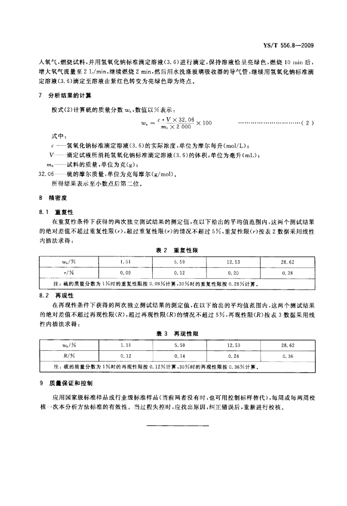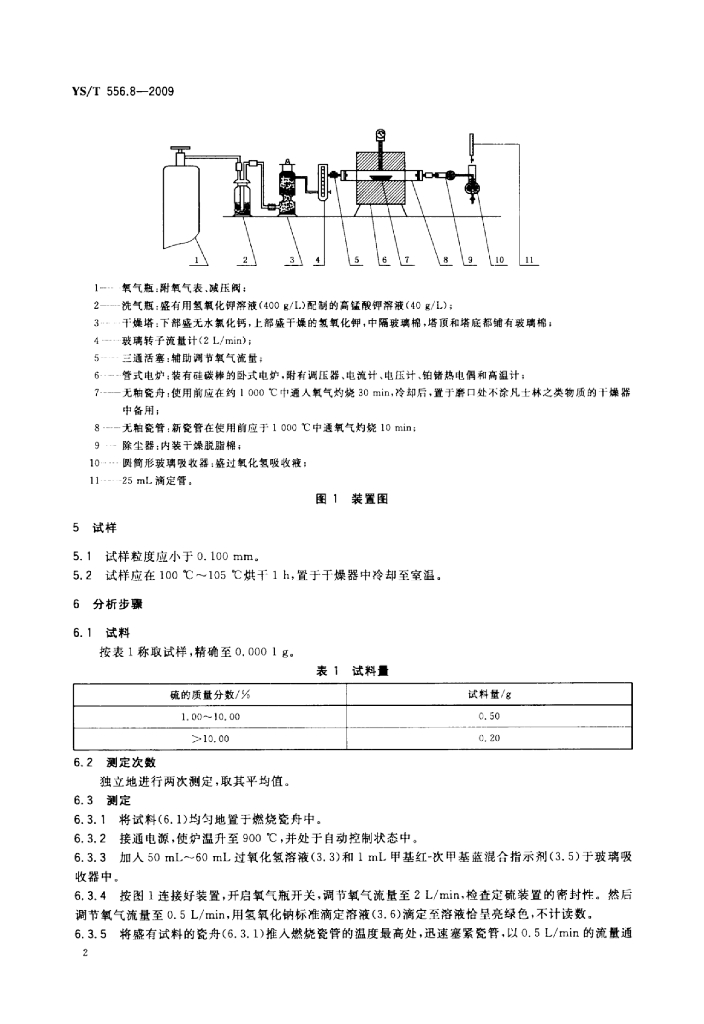 YS/T 556.8-2009 锑精矿化学分析方法 第8部分:硫量的测定燃烧中和法