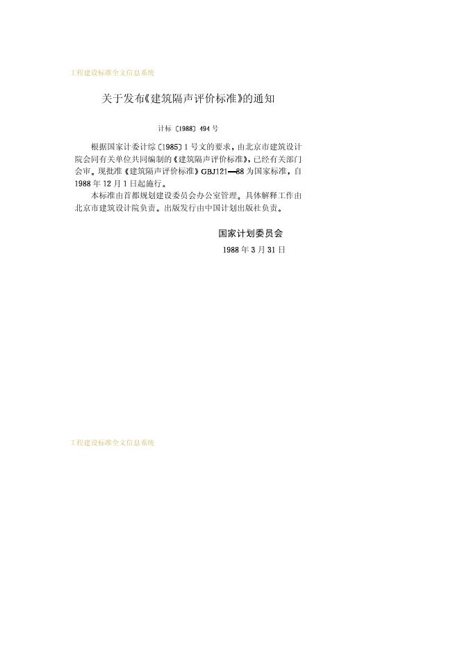 GBJ 121-1988 建筑隔声评价标准