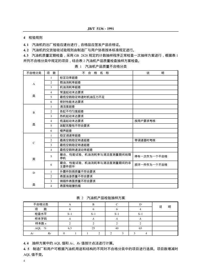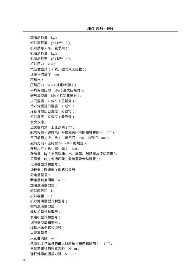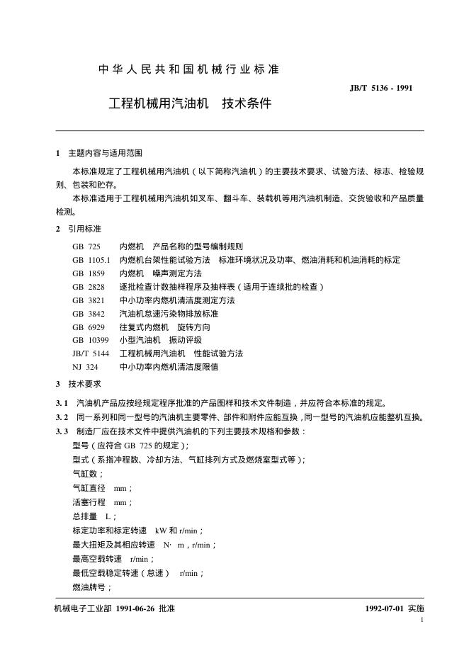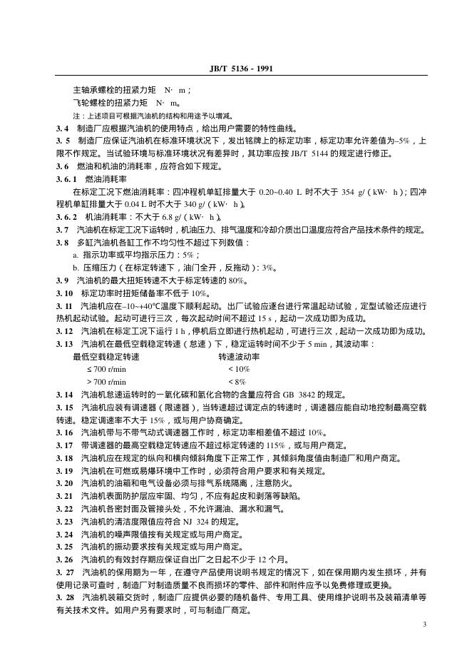 JB/T 5136-1991 工程机械用汽油机 技术条件