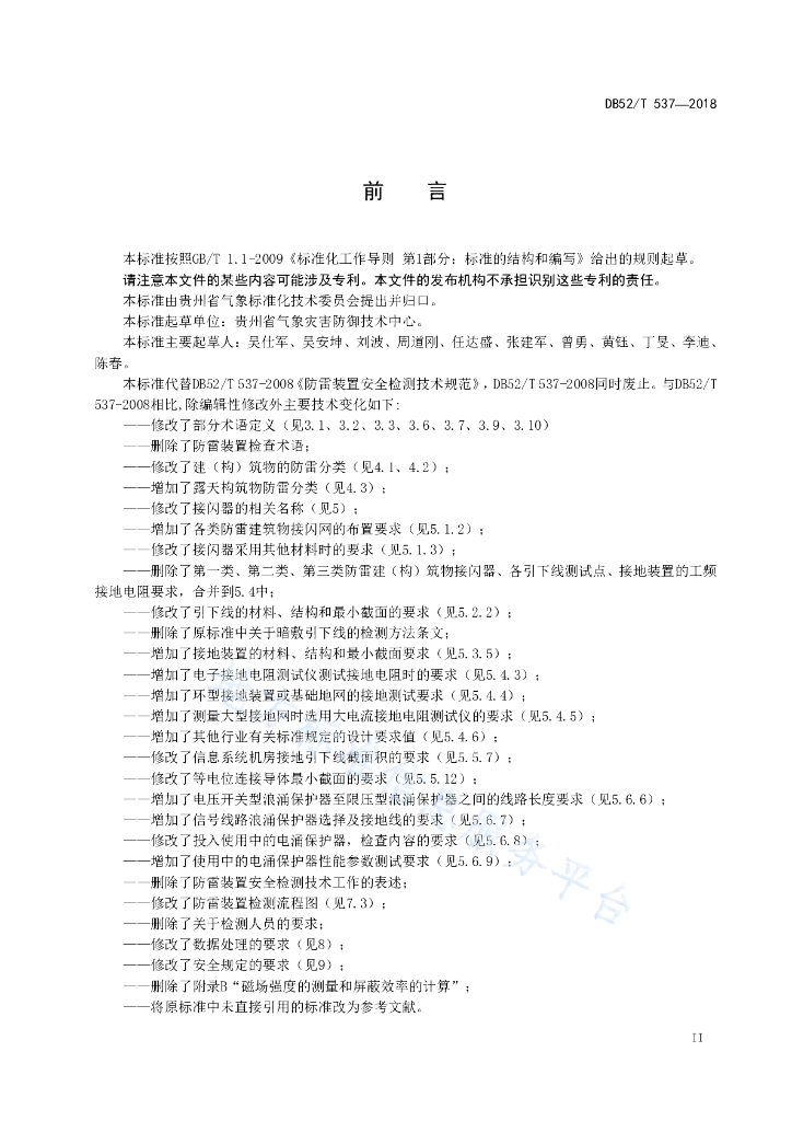DB52/T 537-2018 防雷装置安全检测技术规范