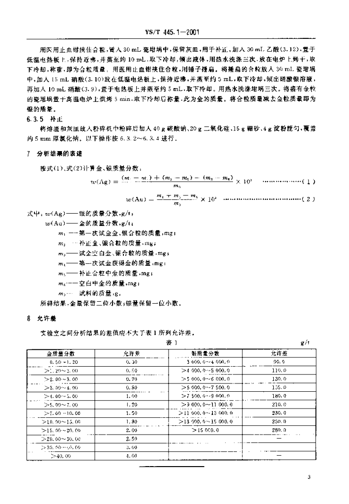 YS/T 445.1-2001 银精矿化学分析方法金和银量的测定