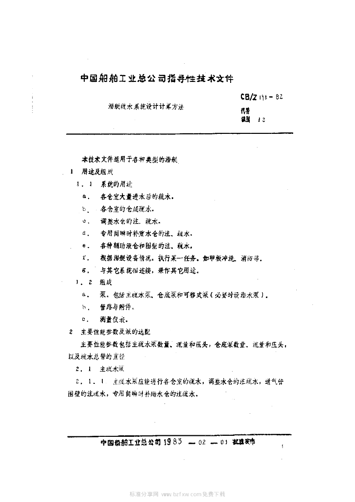 CB/Z 198-1982 潜艇疏水系统设计计算方法