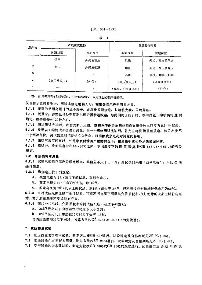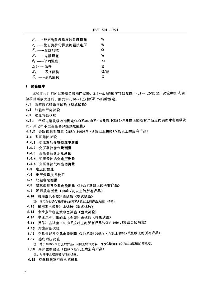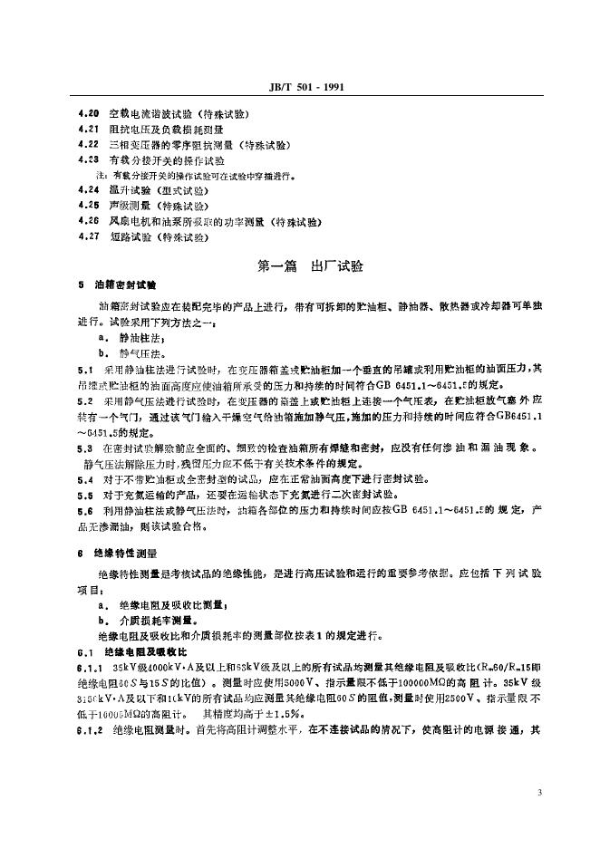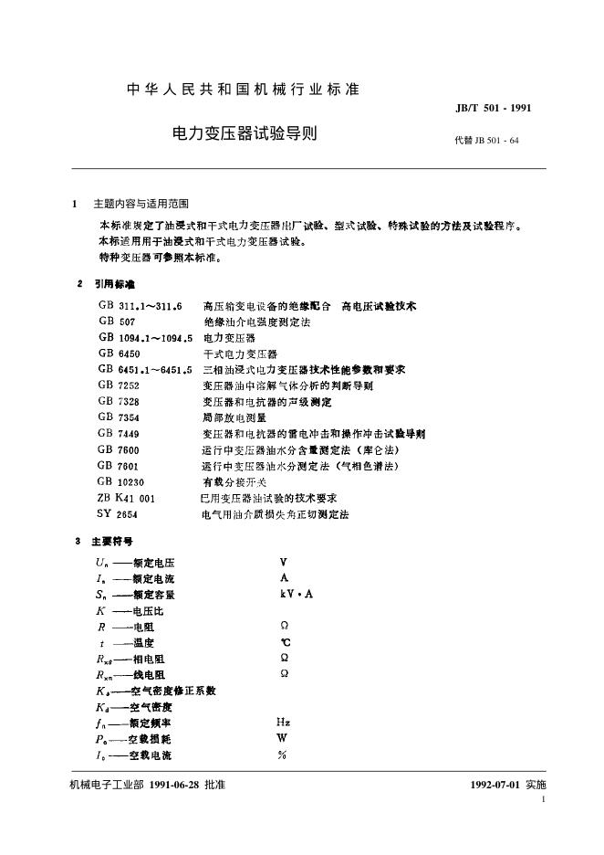 JB/T 501-1991 电力变压器试验导则