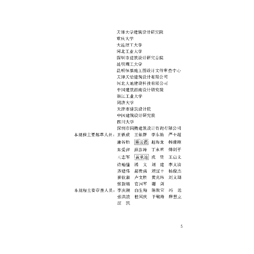 天津大学、山西六建集团有限公司、中国建筑科学研究院、天津大学建筑设计研究院、重庆大学、大连理工大学、河北工业大学、深圳市建筑设计研究总院、昆明理工大学、昆明恒基施工图设计文件审查中心、天津天怡建筑设计有限公司、河北大地建设科技有限公司、中国建筑西南设计研究院、浙江工业大学、同济大学、天津市建筑设计院、中国建筑设计研究院、四川大学、深圳市国腾建筑设计咨询有限公司