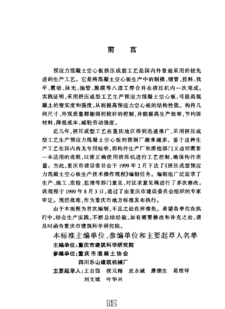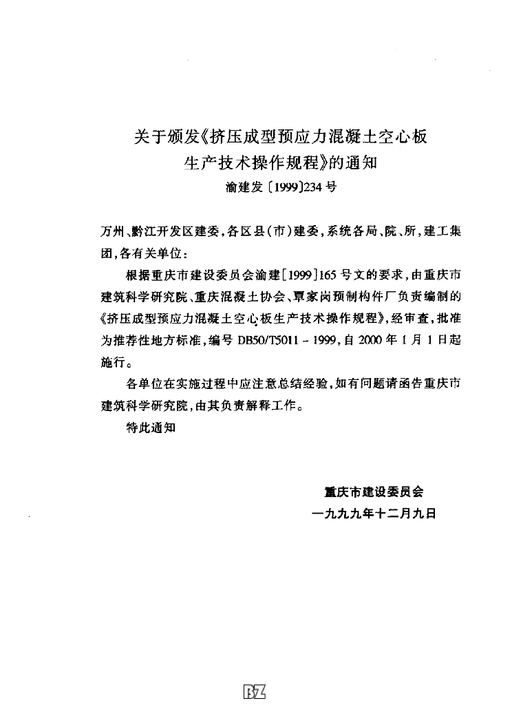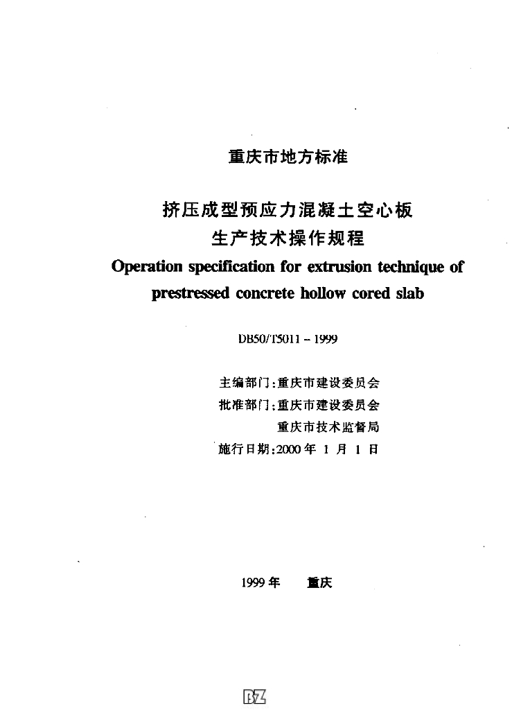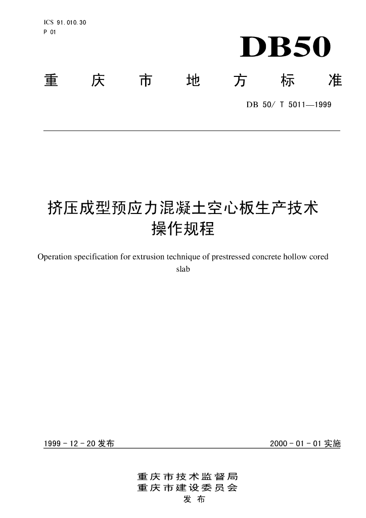 DB50/T 5011-1999 挤压成型预应力混凝土空心板生产技术规程