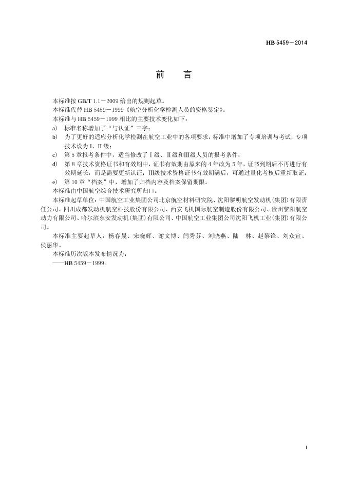 HB 5459-2014(2017) 航空分析化学检测人员的资格鉴定与认证