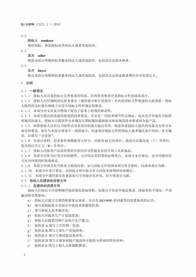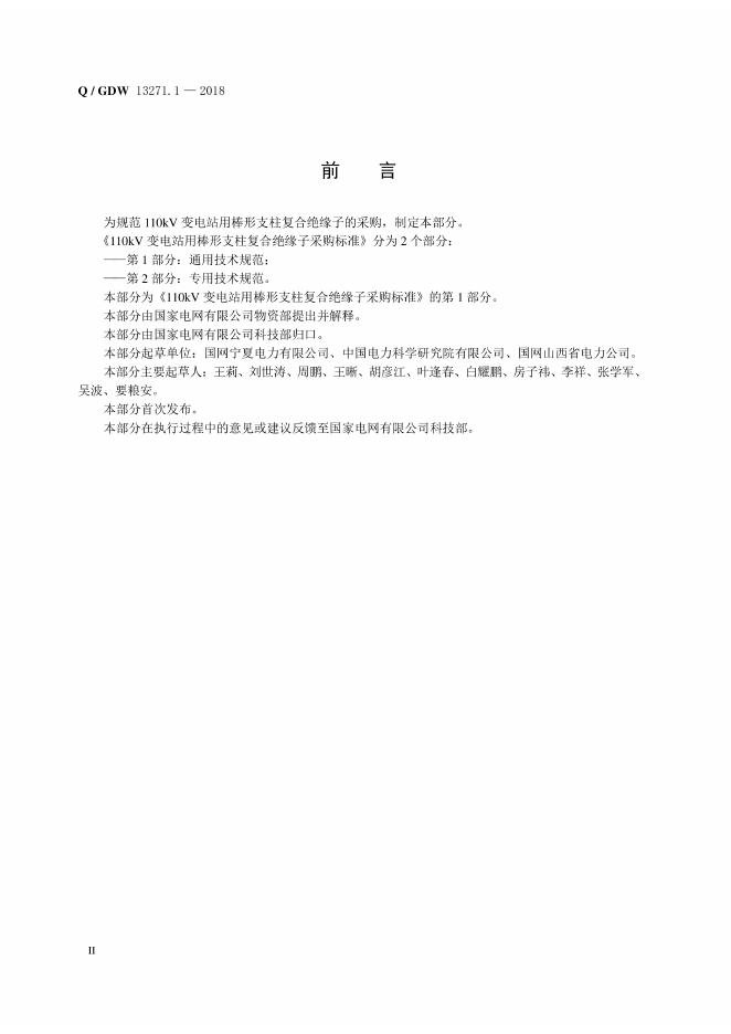 Q/GDW 13271.1-2018 110kV变电站用棒形支柱复合绝缘子采购标准 第1部分:通用技术规范