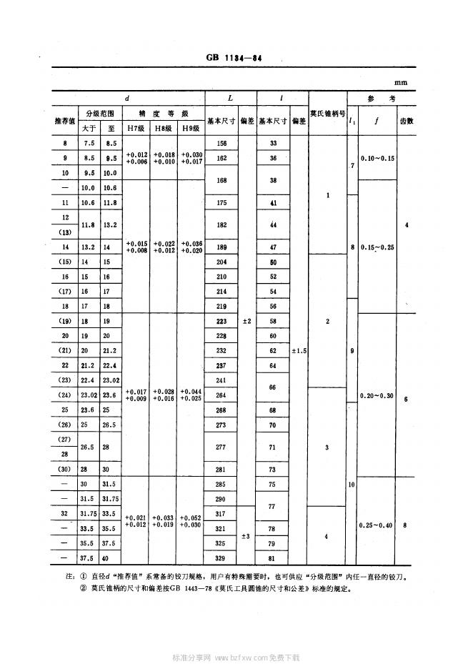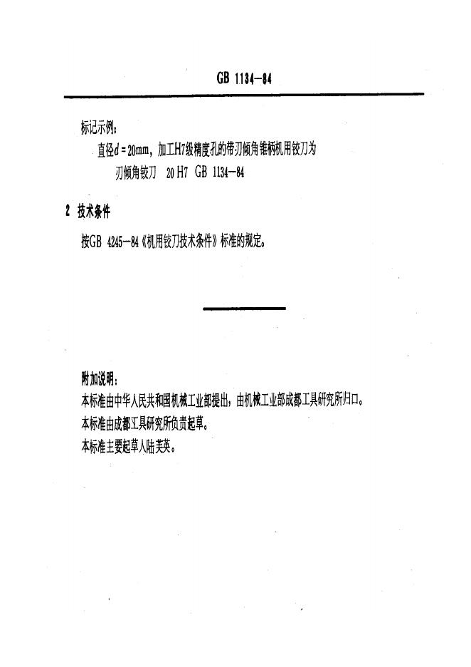 GB/T 1134-1984 带刃倾角锥柄机用铰刀