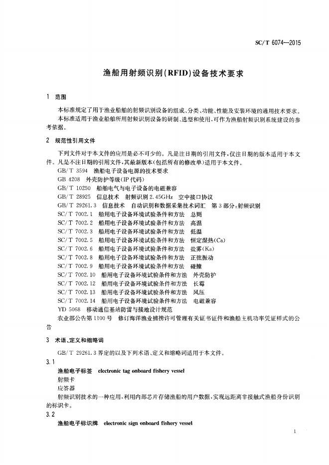 SC/T 6074-2015 渔船用射频识别(RFID)设备技术要求