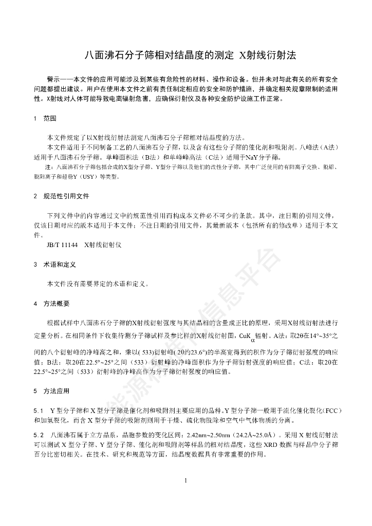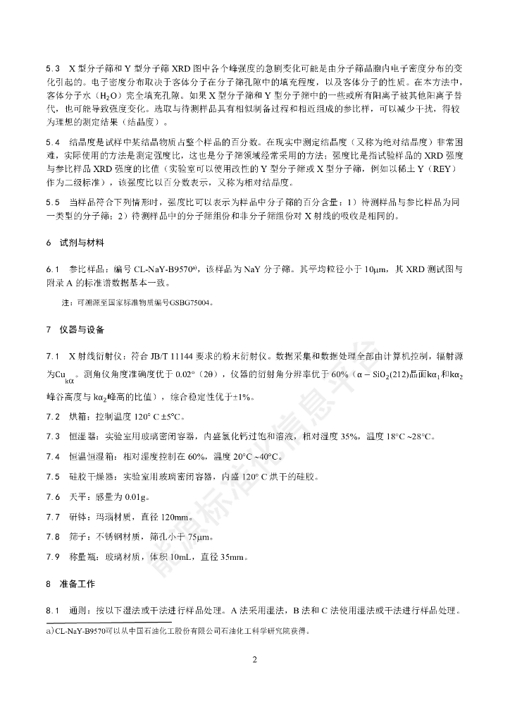 NB/SH/T 0340-2022 八面沸石分子筛相对结晶度的测定 X射线衍射法